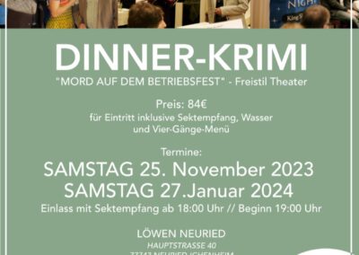 Neben klassischen Events finden bei uns auch außergewöhnliche Formate ihren Platz – vom spannenden Krimi-Dinner, Open Air Kino über gesellige Pub-Quiz-Abende bis hin zu Lesungen oder Comedy. Unser Haus steht für Vielfalt und bietet die passende Bühne für alle, die etwas Besonderes erleben möchten.